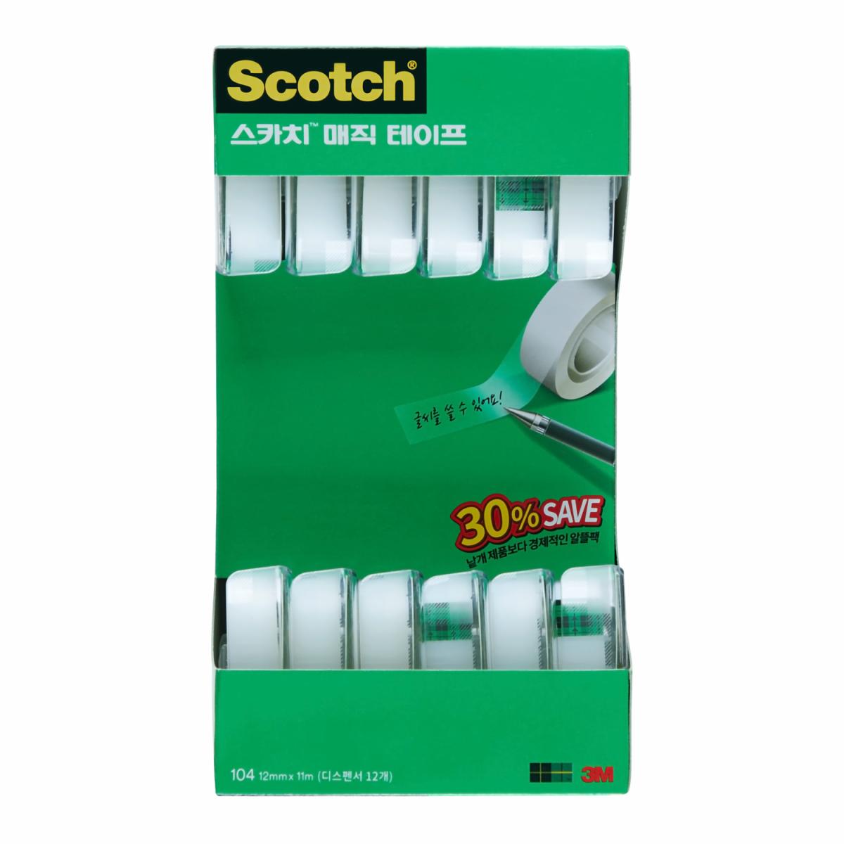 스카치™ 매직 테이프는 반투명한 무광 재질의 프리미엄 제품으로 사무실, 가정, 학교에서 다양하게 활용됩니다. 접착력이 강하면서도, 떼어낼 때는 잔여물 없이 깔끔하게 제거됩니다. 손상된 종이 등을 간단히 고쳐서 사용하기에 적합합니다. 테이프 위에 펜, 연필, 마카 등으로 메모도 가능합니다.